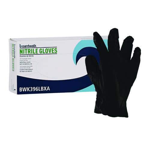 396 Series Disposable General-Purpose Nitrile Gloves, Powder-Free, Large, 4.4 mil Thick, 9.5″ Long, Black, 100/BX, 10 BX/CT